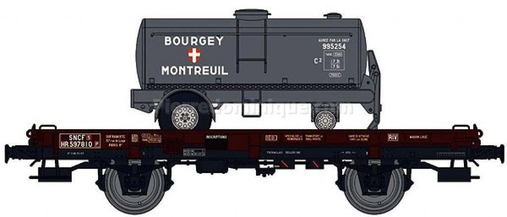 Wagon Mono-porteur UFR avec remorque citerne BOURGEY-MONTREUIL