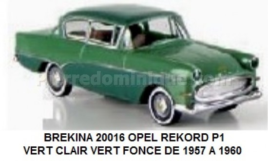 OPEL REKORD P1 VERT CLAIR VERT FONCE DE 1957 A 1960