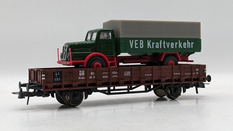 WAGON PLAT PORTE CAMION VEB KRAFTVERHR DR - BOITE DEFRAICHIE