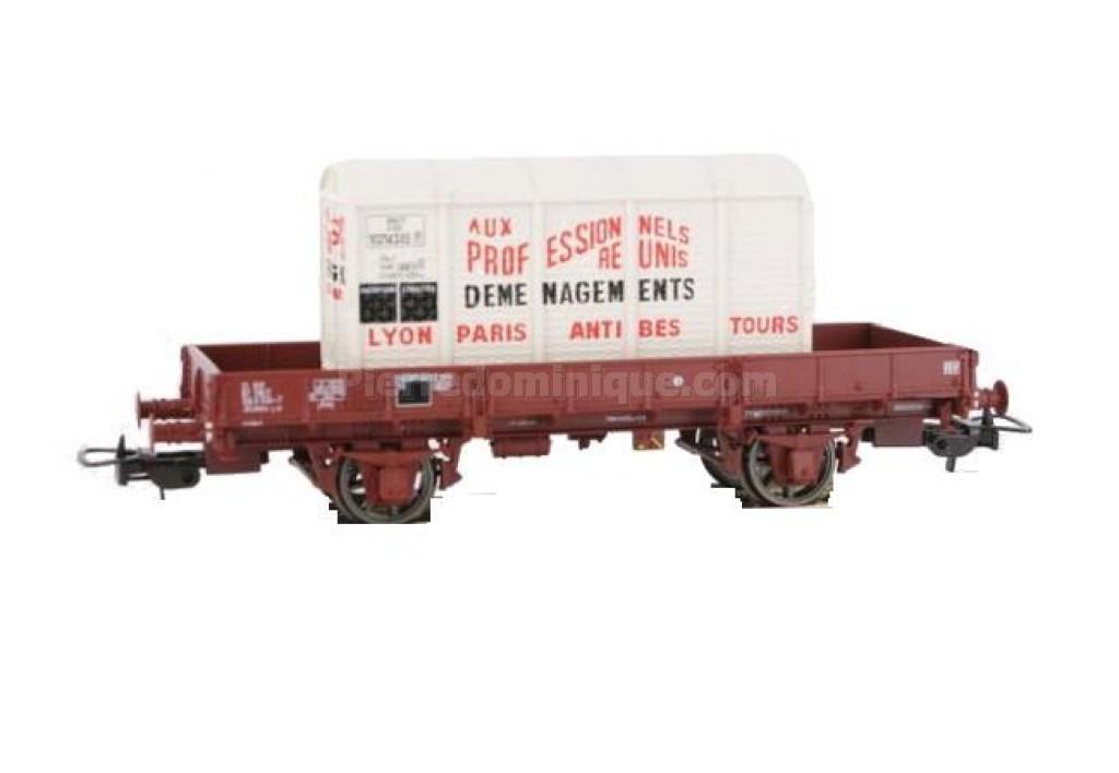 *PROMOS* - WAGON PLAT OCEM 29 Klmms A RIDELLES SNCF PORTE CONTENEUR DEMENAGEMENT PROFESSIONELS REUNIS BLANC