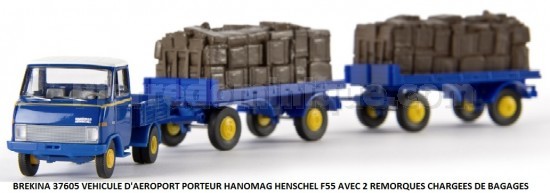 VEHICULE D'AEROPORT PORTEUR HANOMAG HENSCHEL AVEC 2 REMORQUES CHARGEES DE BAGAGES