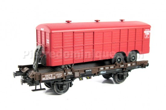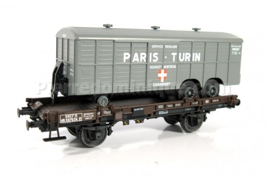 *PROMOS* - WAGON PLAT UFR MONO PORTEUR SNCF + REMORQUE PARIS-TURIN