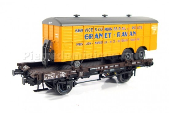 *PROMOS* - WAGON PLAT UFR MONO PORTEUR SNCF + REMORQUE GRANET RAVAN