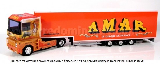 TRACTEUR RENAULT MAGNUM " ESPAGNE " ET SA SEMI-REMORQUE BACHE DU CIRQUE AMAR