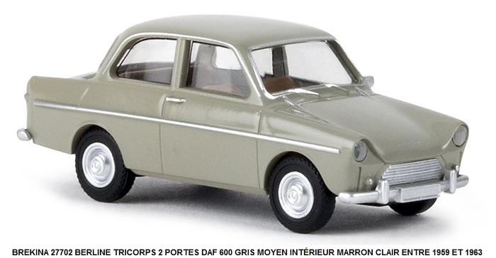 BERLINE TRICORPS 2 PORTES DAF 600 GRIS MOYEN INTÉRIEUR MARRON CLAIR ENTRE 1959 ET 1963