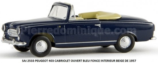 PEUGEOT 403 CABRIOLET OUVERT BLEU FONCE INTERIEUR BEIGE DE 1957