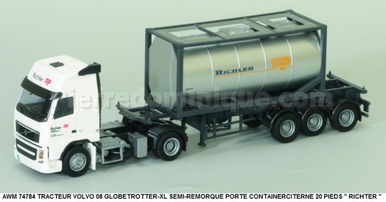 TRACTEUR VOLVO 08 GLOBETROTTER-XL SEMI-REMORQUE PORTE CONTAINERCITERNE 20 PIEDS " RICHTER "