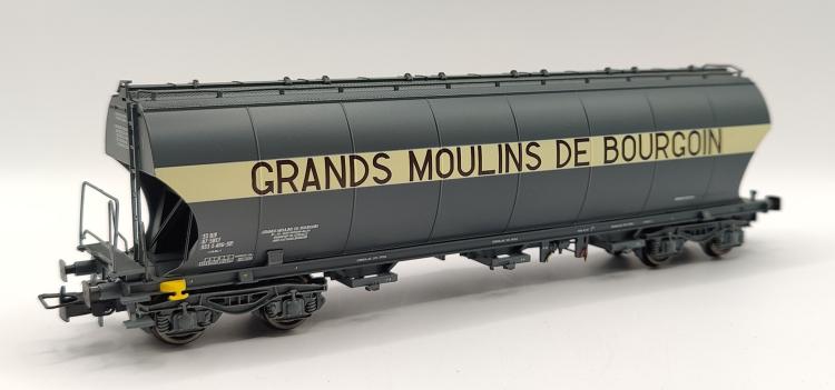 WAGON CEREALIER A PAROIS LATERALES BOMBEES \'\'GRANDS MOULINS DE BOURGOIN\'\' SNCF