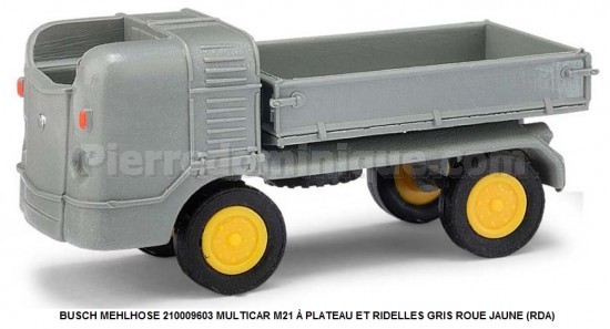 MULTICAR M21 À PLATEAU ET RIDELLES GRIS ROUES JAUNE (RDA)
