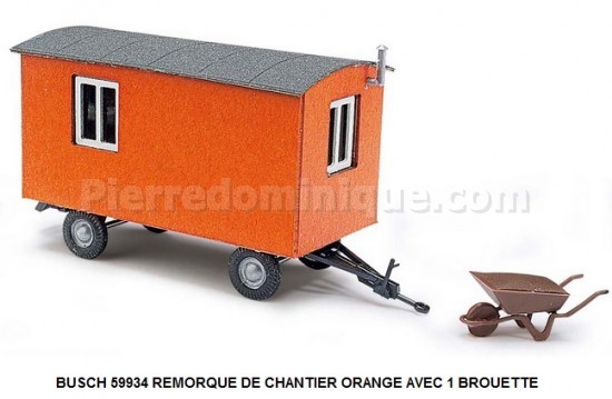 REMORQUE DE CHANTIER ORANGE AVEC 1 BROUETTE