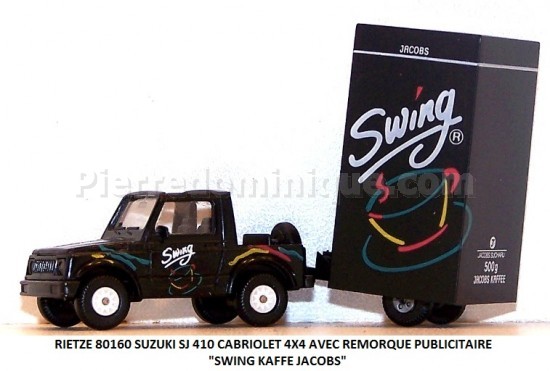 SUZUKI SJ 410 4X4 CABRIOLET AVEC REMORQUE PUBLICITAIRE "SWING KAFFE JACOBS"