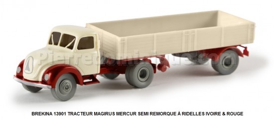 TRACTEUR MAGIRUS MERCUR SEMI REMORQUE À RIDELLES IVOIRE ROUGE