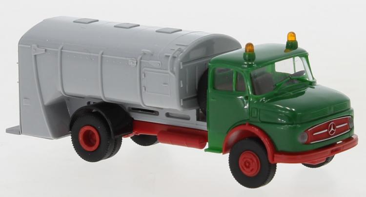 CAMION POUBELLE MERCEDES BENZ L322 VERT CHASSI ROUGE BENNE GRISE