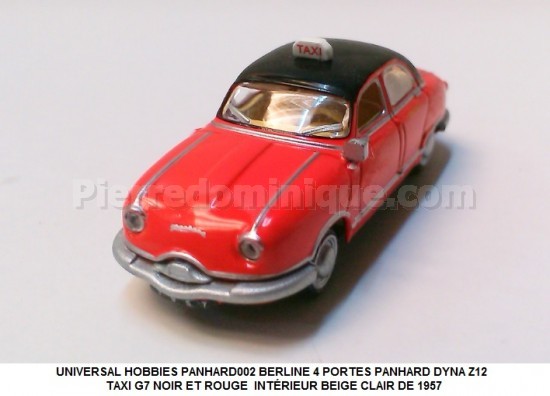 BERLINE 4 PORTES PANHARD DYNA Z12 TAXI G7 NOIR ET ROUGE INTÉRIEUR BEIGE CLAIR DE 1957