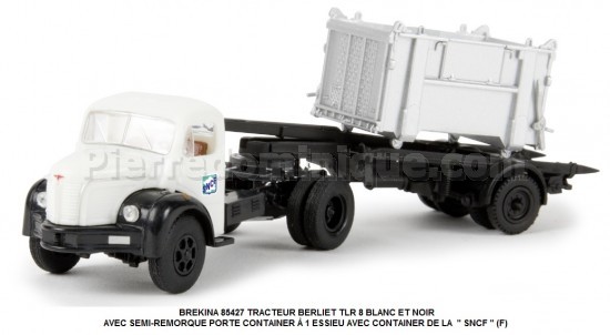 TRACTEUR BERLIET TLR 8 BLANC ET NOIR AVEC SEMI-REMORQUE PORTE CONTAINER À 1 ESSIEU AVEC CONTAINER DE LA