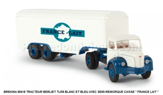 TRACTEUR BERLIET TLR8 BLANC ET BLEU AVEC SEMI-REMORQUE CAISSE '' FRANCE LAIT ''