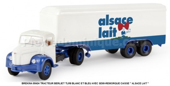 TRACTEUR BERLIET TLR8 BLANC ET BLEU AVEC SEMI-REMORQUE CAISSE '' ALSACE LAIT ''