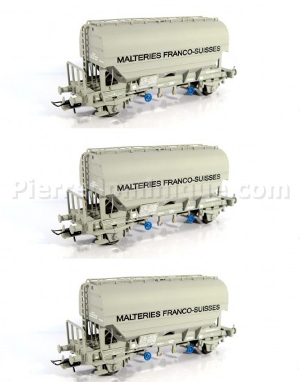 COFFRET 3 WAGONS CEREALIERS MALTERIES FRANCO-SUISSES SNCF