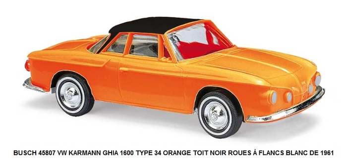 VW KARMANN GHIA 1600 TYPE 34 ORANGE TOIT NOIR ROUES À FLANCS BLANC DE 1961