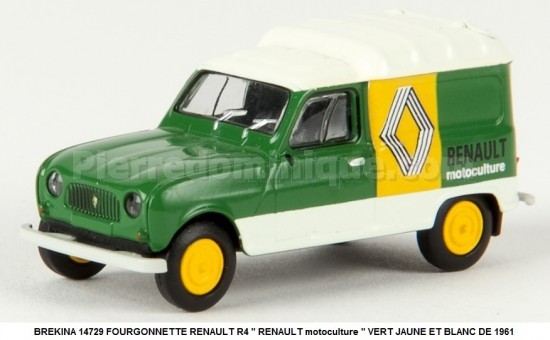 FOURGONNETTE RENAULT R4 '' RENAULT motoculture '' VERTJAUNE ET BLANC DE 1961