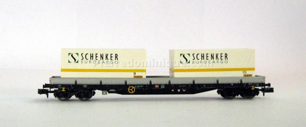 WAGON PLAT AVEC CHARGEMENT DE DEUX CONTENEURS ''SCHENKER'' DB