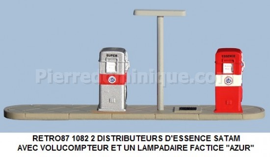 2 DISTRIBUTEURS D'ESSENCE SATAM AVEC VOLUCOMPTEUR ET UN LAMPADAIRE FACTICE AZUR
