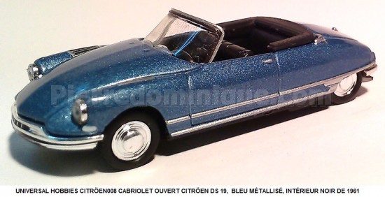 CABRIOLET OUVERT CITRÖEN DS 19, BLEU MÉTALLISÉ, INTÉRIEUR NOIR DE 1961