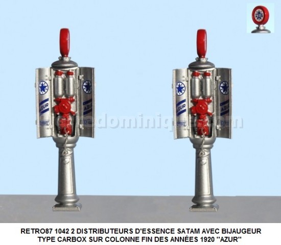 2 DISTRIBUTEURS D'ESSENCE SATAM AVEC BIJAUGEUR TYPE CARBOX SUR COLONNE FIN DES ANNÉES 1920 ''AZUR''