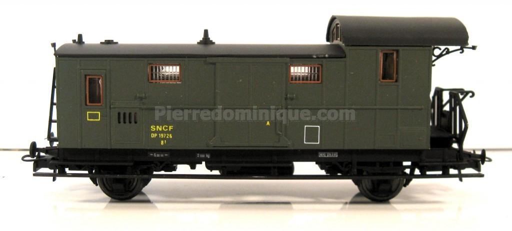 VOITURE VOYAGEURS 3°CL A 3 ESSIEUX PORTIERES LATERALES AVEC GUERITE DE LA SNCF
