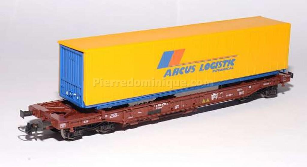 WAGON PLAT Sdkms AVEC CONTENEUR \\\'\\\'ARCUS LOGISTIC\\\'\\\' DB