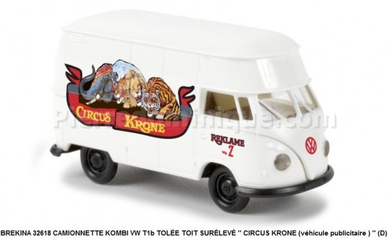 CAMIONNETTE KOMBI VW T1b TOLÉE TOIT SURÉLEVÉ CIRCUS KRONE (véhicule publicitaire ) (D)