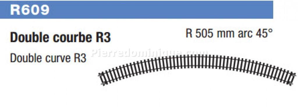 12X RAILS DOUBLE COURBE R3 45° 505mm