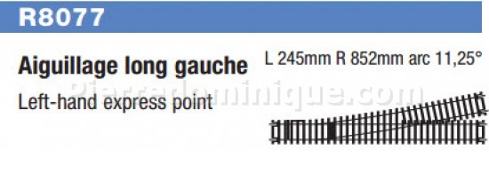 AIGUILLAGE LONG GAUCHE L245 R852 ARC 11.25°