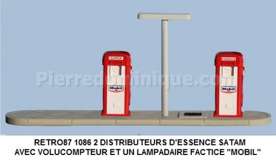 2 DISTRIBUTEURS D'ESSENCE SATAM AVEC VOLUCOMPTEUR ET UN LAMPADAIRE FACTICE ''MOBIL''
