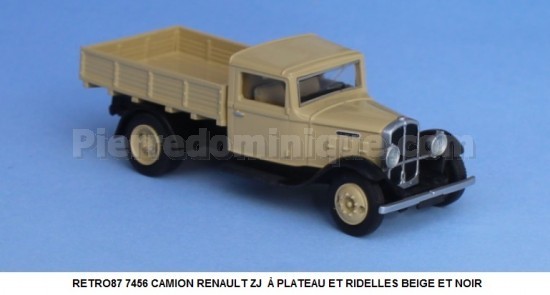 CAMION RENAULT ZJ À PLATEAU ET RIDELLES BEIGE ET NOIR