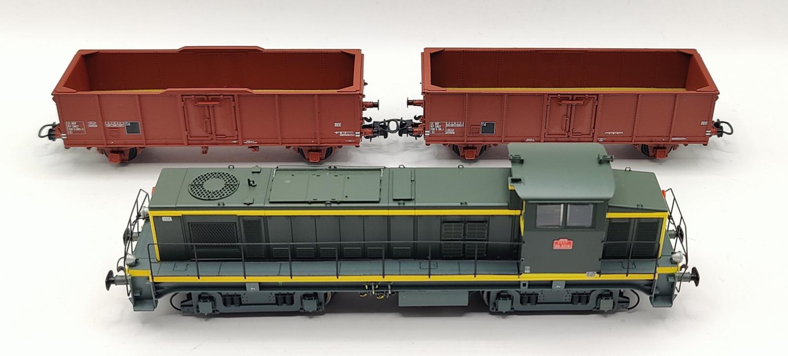 COFFRET LOCOMOTIVE DIESEL BB63116 PARIS S.O + 2 TOMBEREAUX EX VILLACH METALLISES SNCF