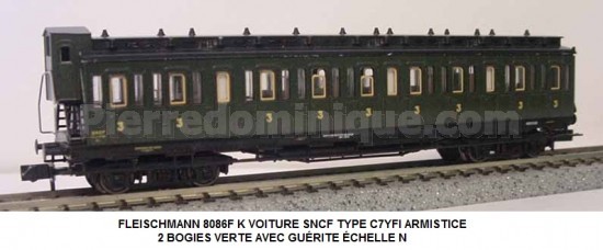 VOITURE SNCF TYPE C7YFI ARMISTICE 2 BOGIES VERTE AVEC GUÉRITE ÉCHELLE N