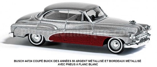 COUPÉ BUICK DES ANNÉES 50 ARGENT MÉTALLISÉ ET BORDEAUX MÉTALLISÉ AVEC PNEUS À FLANC BLANC