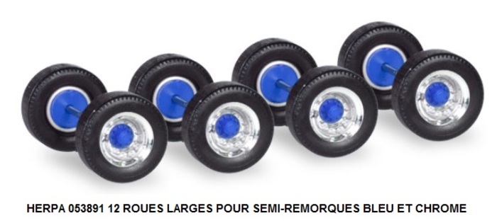 12 ROUES LARGES POUR SEMI-REMORQUES BLEU ET CHROME