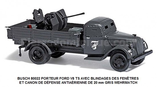 PORTEUR FORD V8 TS AVEC BLINDAGES DES FENÊTRES ET CANON DE DÉFENSE ANTIAÉRIENNE DE 20 mm GRIS WEHRMATCH