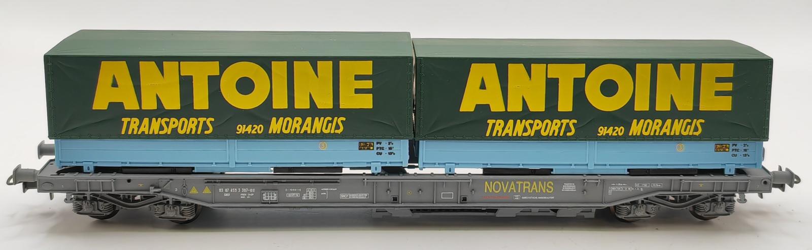 WAGON PLAT NOVATRANS AVEC 2 CONTAINERS ANTOINE TRANSPORTS
