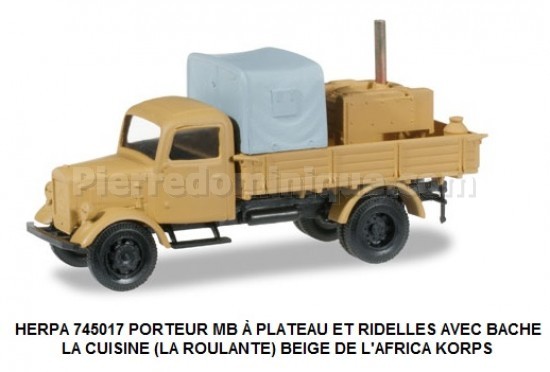 PORTEUR MB À PLATEAU ET RIDELLES AVEC BACHE LA CUISINE (LA ROULANTE) BEIGE DE L'AFRICA KORPS