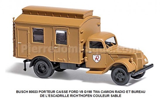 BUSCH 80023 PORTEUR CAISSE FORD V8 G198 TWA CAMION RADIO ET BUREAU DE L'ESCADRILLE RICHTHOFEN COULEUR SABLE