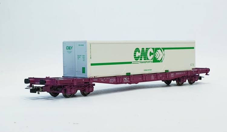 WAGON PORTE CONTENEURS + CONTENEUR CNC TRANSPORT SNCF - BOITE ABIME