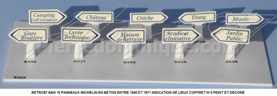 10 PANNEAUX MICHELIN EN BÉTON ENTRE 1946 ET 1971 INDICATION DE LIEUX COFFRET N°4 PEINT ET DÉCORÉ