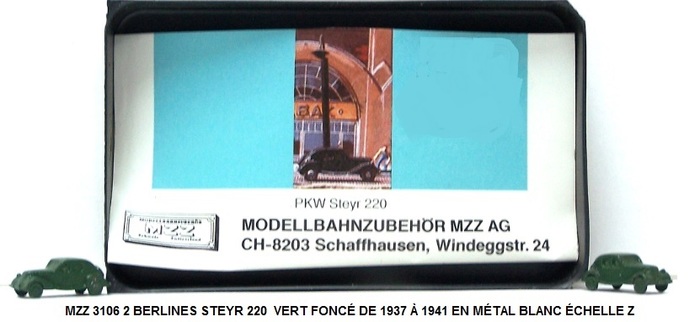 2 BERLINES STEYR 220 VERT FONCÉ DE 1937 À 1941 EN MÉTAL BLANC ÉCHELLE Z