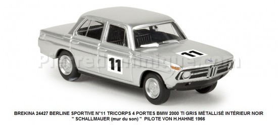 BERLINE SPORTIVE N°11 TRICORPS 4 PORTES BMW 2000 TI GRIS MÉTALLISÉ INTÉRIEUR NOIR " SCHALLMAUER (mur du son) " PILOTE VON H.HAHNE 1966