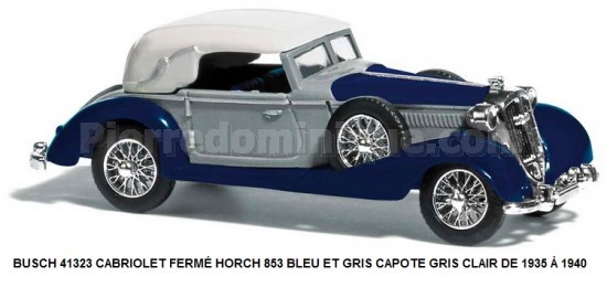 CABRIOLET FERMÉ HORCH 853 BLEU ET GRIS CAPOTE GRIS CLAIR DE 1935 À 1940