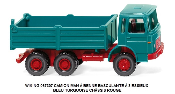 CAMION MAN À BENNE BASCULANTE À 3 ESSIEUX BLEU TURQUOISE CHSSIS ROUGE