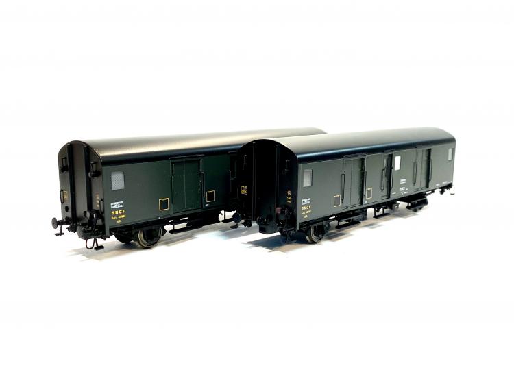 ENSEMBLE DE 2 FOURGONS METALLISES EX MIDI DQD2M 49666 49700 SNCF - FEUX DE FIN DE CONVOI SUR UN FOURGON